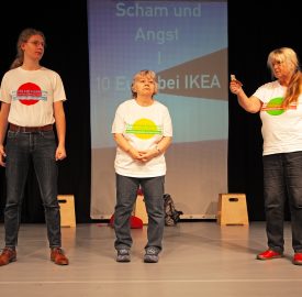 Was heißt das eigentlich – inklusives Theater? Seit 2015 arbeiten die Spielerinnen und Spieler der inklusiven Forumtheatergruppe THEATER DER BEGEGUNG (ehemals FORUM:Merkurius) schon zusammen, zeigen Szenen ihres Alltags und suchen Lösungen mit ihren Zuschauern. Auch wenn auf der Bühne die verschiedenen Fähigkeiten kein Hindernis des Zusammenspiels sind – die Anordnung des Theaters bleibt gleich: ein …...